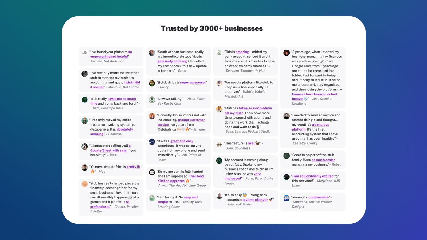 If you have something to say about stub, send it through to us, and we'll add it to our wall of stub love 💜